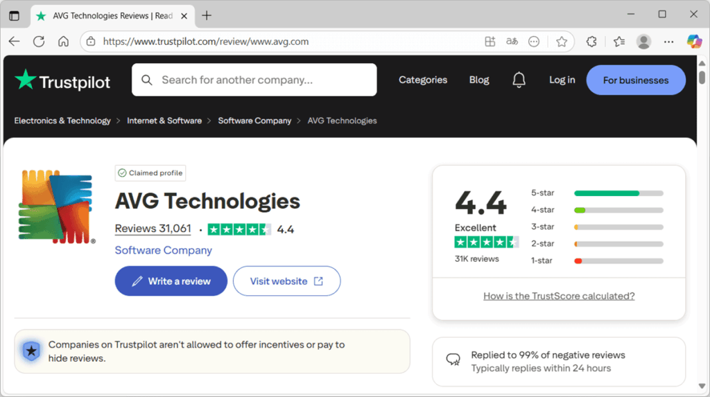 尚、AVGテクノロジー社の評価は「4.4」になります。