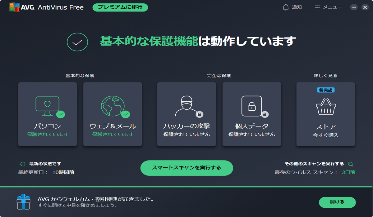 尚、更新ファイルの確認からインストールまで自動で行ってくれるため、初心者でも安心できる魅力があります。AVG無料アンチウイルスは導入するだけで機能してくれます。