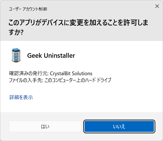 「ユーザーアカウント制御」のメッセージ画面が表示されるので「はい」を選択します。