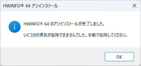 すべての作業が終わったら、このような画面が表示されますので「OK」ボタンをクリック。