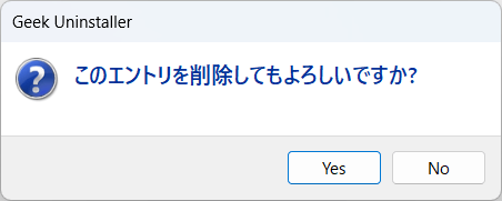 確認メッセージが表示されるので、「Yes(はい)」を選びます。エントリ表示が削除されます。
