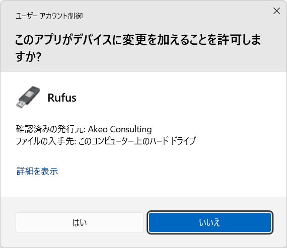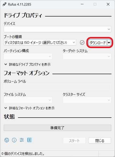 「Rufus」アプリのダウンロード手順は「「Rufus」でインストールメディアを作成する方法」を参考にしてみてください。