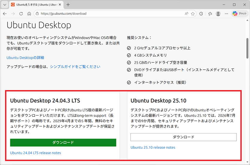 ISOファイルのダウンロードは、「Ubuntu公式ページ」から行ってください。