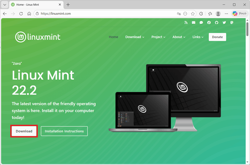 ISOファイルは、「Linux Mint公式ページ」から入手できます。