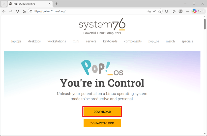 「Pop!_OS公式ページ」からOSデータが入手できます。