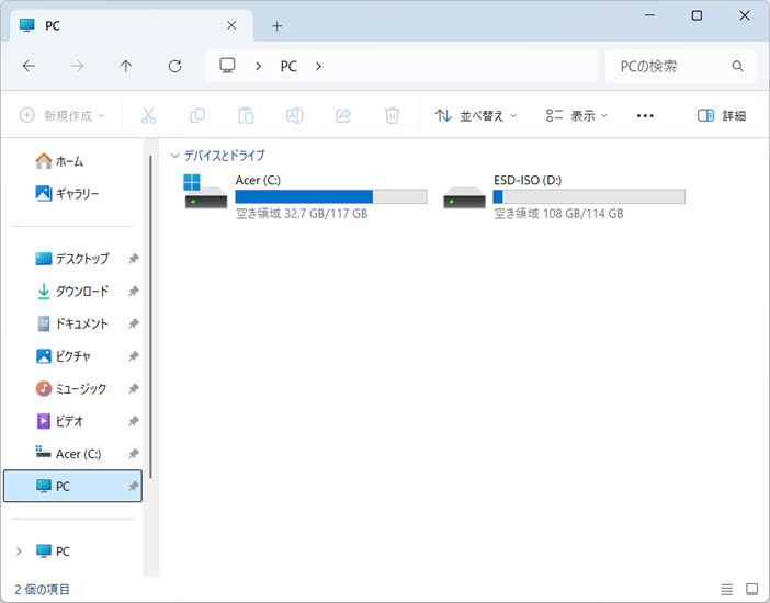 終了後、外付けドライブの名前が「ESD‐ISO」に変わっていたら成功です。